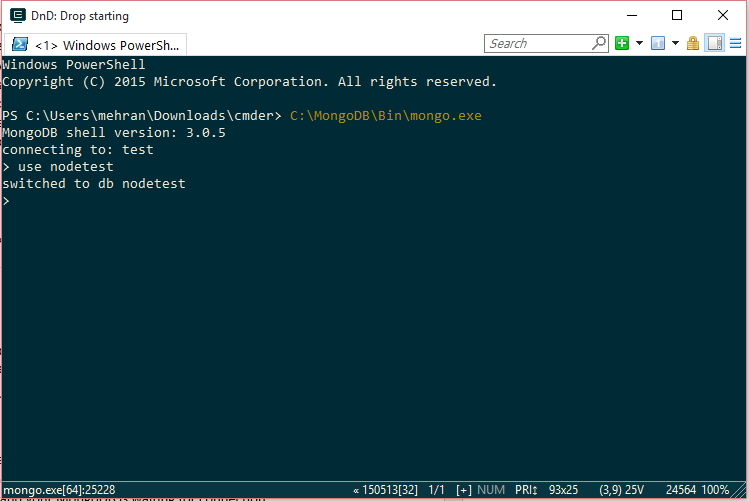 Now it is time to do some fantastic thing, normally connecting to database and retrieving data from database or writing into database is quite interesting if you are working with new platform and tools. Today I want to show you how to connect to the MongoDB and retrieve data (of course I will teach you how to insert first), for a few seconds forget about node.js and focus on MongoDB, in order to create a database in MongoDB we need to follow the below steps: